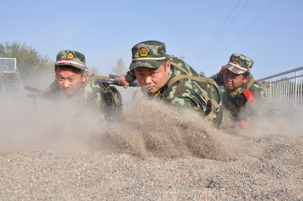 圖:淖毛湖邊防派出所官兵進行日常訓練 王甫攝