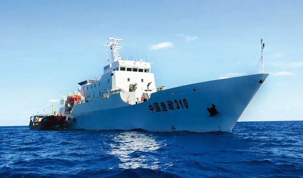 圖:菲律賓稱黃岩島潟湖內的中國船隻已經全部撤走,圖為中國之前派往黃岩島海域的「中國漁政船310」號/資料圖片