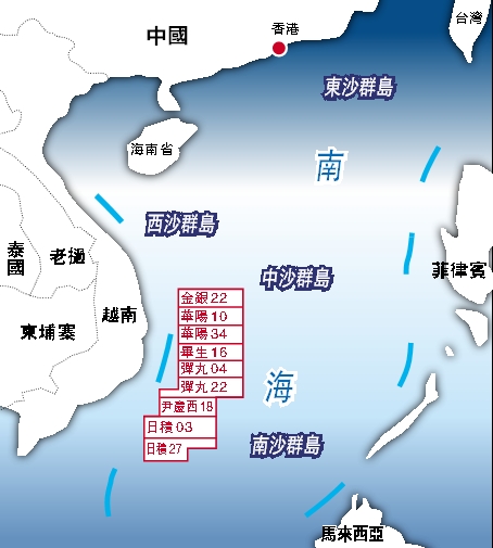 根據中海油官網公布的示意圖可見,中海油將正式在南海海域開放九個海上區塊,海域位置均鄰近越南,其中七個位於中建南盆地,兩個位於萬安盆地與南薇西盆地部分區域。這些區塊水深在300米到4000米之間,總面積約為16萬平方公里。中海油表示,將在這些區域與外國公司進行聯合油氣勘探開發,即日起外國公司可公開諮詢油田資料與提交開發申請。