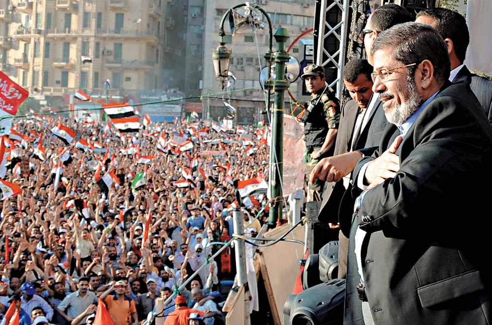 圖:埃及總統穆爾西6月29日在開羅解放廣場向民眾象徵性宣誓就職/路透社