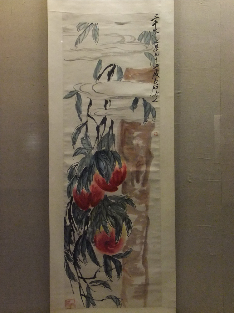 圖:齊白石九十二歲時所作的《桃實圖》/本報攝