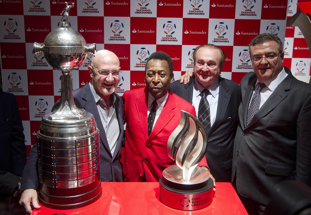 圖:球王比利(左二)出席自由杯賽前記者會\美聯社