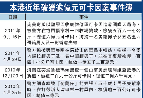 有社工指出,近兩年新界區濫用可卡因情況有急劇上升趨勢,以元朗區為例,近兩個年度濫用可卡因呈報人數,分別上升近一倍及三成,吸食者以二十一歲以上的成年人佔三分之二。他指出,不少濫藥者因為毒癮轉深,由氯胺酮轉食可卡因,追求更高的亢奮度。