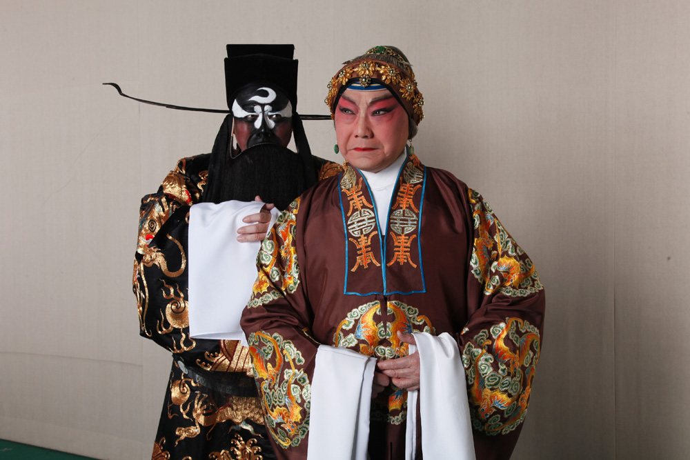 圖:阮兆輝( 左 ) 與尤聲普合演新編粵劇《 無私鐵面包龍圖 》