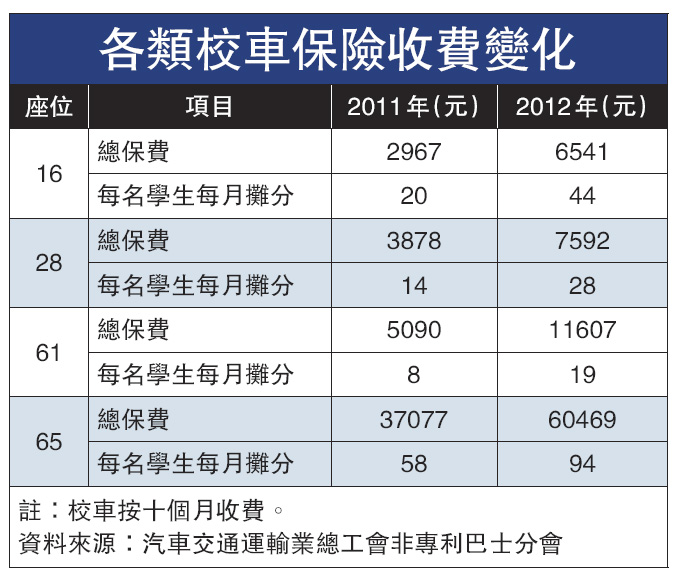 算一筆經營帳,現時校車東主每月要支付的司機及保母薪酬最少一萬四千元、過萬元汽油費、保費逾千元、停車場千幾元,還未計算勞保、強積金、維修和車胎更換。汽車交通運輸業總工會會務主任譚偉照補充,校車公司每年只能收十個月車費,員工薪酬仍要僱主出。一人經營的保母車境況更慘。