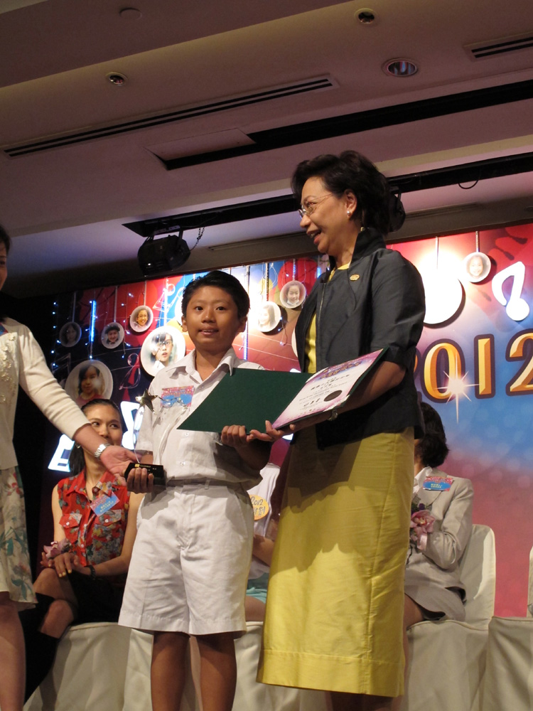 【本報訊】實習記者盧雪花報道:知道自己只有40歲命,你會怎麼過?2012香港青少年傑出獎獲得者,亦是甲狀腺異常者的李仲賢選擇「多學」同「認真過好每一天」。他和九位學生獲頒「傑出少年獎」,他們從特首夫人梁唐青儀手上接過獎狀。