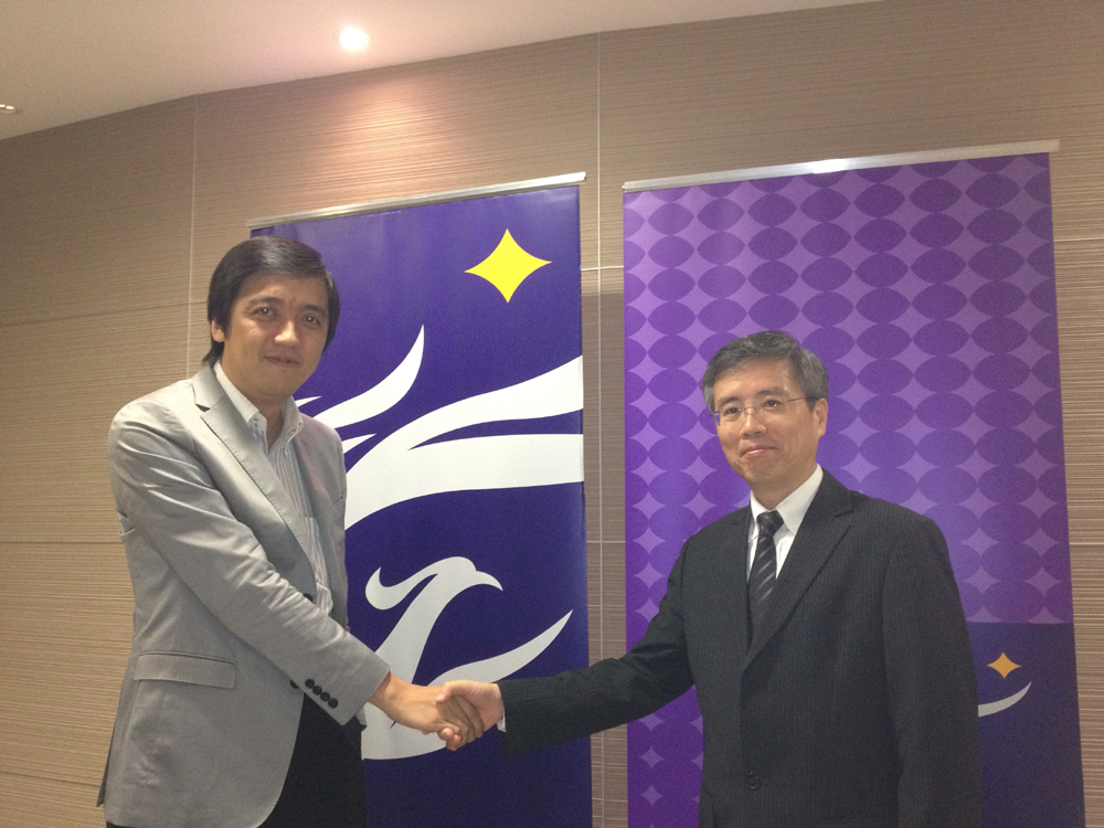 圖:(左起)李立峯和范建強代表中大新聞傳播學院和商學院合辦五年制雙學位學士課程/本報記者 呂少群攝