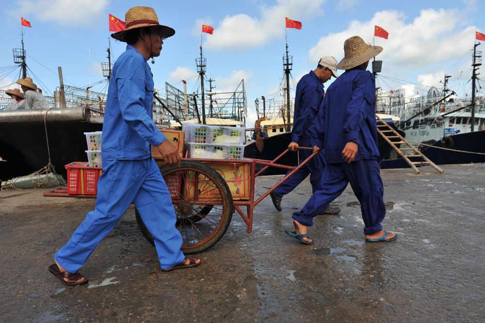 圖:兩岸學者認為,海洋環境保護、海上污染處理、海上搜救、漁業資源養護、航道安全維護等方面,都是兩岸可以合作的領域。圖為海南漁民搬運補給品準備赴南沙捕撈/新華社