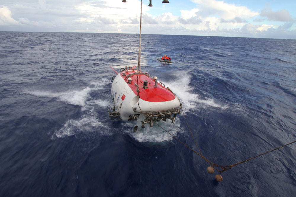 圖:「蛟龍」號六月十九日進行7000米級海試第二次下潛試驗/新華社
