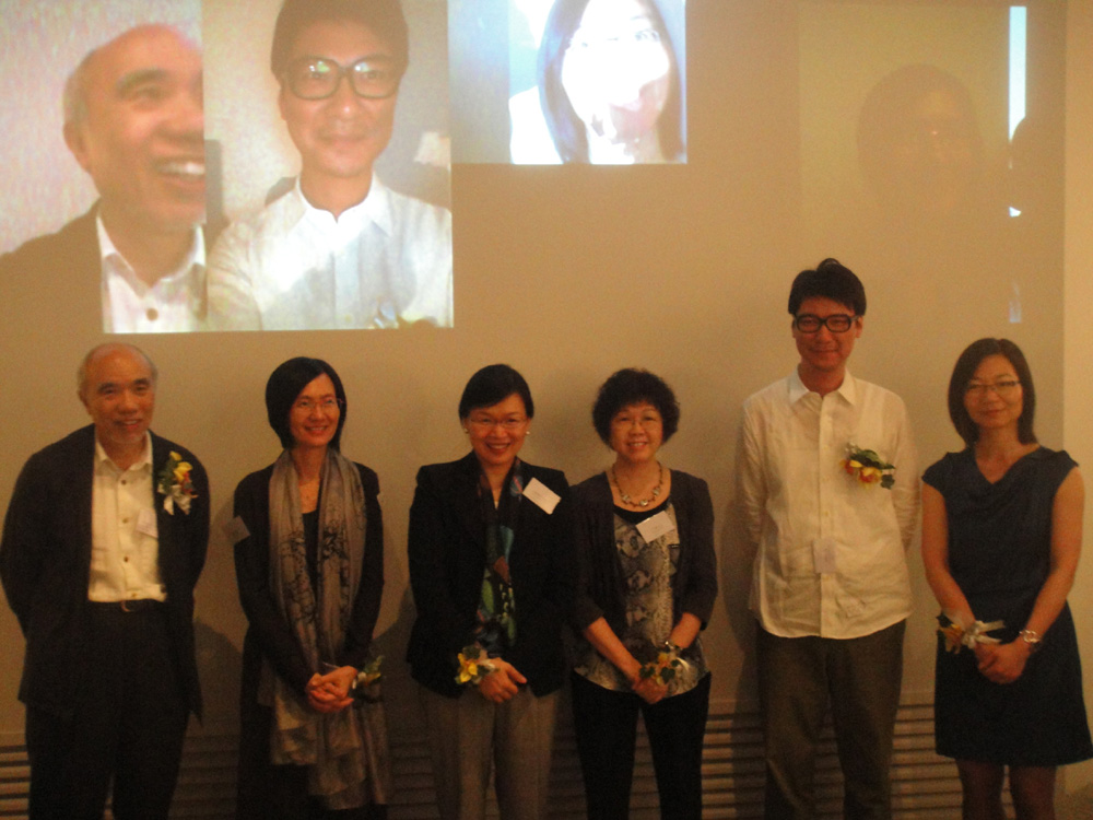 圖:羅榮生(左起)、盧婉雯、許曉暉、王禾璧、譚偉平及黃秀蘭為展覽揭幕/本報攝