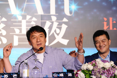 圖:成龍談善事,手舞足蹈,李亞鵬(右)亦聽得開心