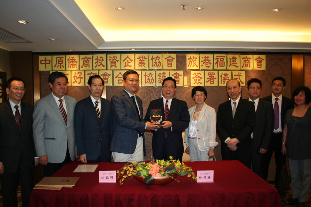 林銘森在致詞時說,今年4月赴河南參加「投洽會」時,非常榮幸應邀參加了中原僑商會的成立慶典。在河南省委書記盧展工的關心下,促成了這樁好事。他並指,中原是福建鄉親的祖地,有着特殊的情感,未來合作將更為密切;目前在河南投資的閩商很多,而且發展及合作得很順利、很愉快,今後可相互促進和幫助;徐會長由河南專程來港簽約,誠意令人感動,相信未來雙方一定能夠取得更好的成果。