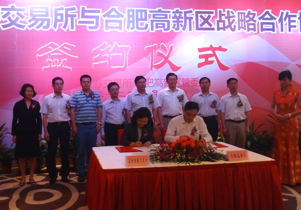 根據相關協議,合肥高新區與深交所開展園區企業上市集中專業輔導,及時向企業提供相關政策動向信息,探索設立上市企業孵化中心,幫助園區企業在中小板或創業板上市。深交所副總經理陳鴻橋此間表示,將幫助合肥高新區早日取得中小企業私募債試點資格,積極推動該區後備企業在中小企業私募債試點獲批後發行私募債。此外,深交所還將與合肥高新區聯合建設路演中心,推動該園區早日取得新三板試點資格,讓更多優質企業進入資本市場。