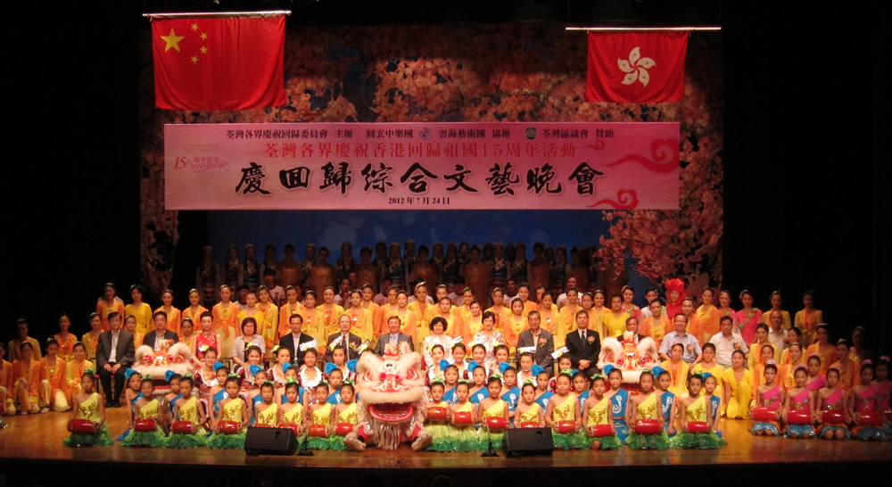 圖:荃灣各界舉辦慶祝香港回歸祖國十五周年綜合文藝晚會,賓主合影\本報記者方成攝