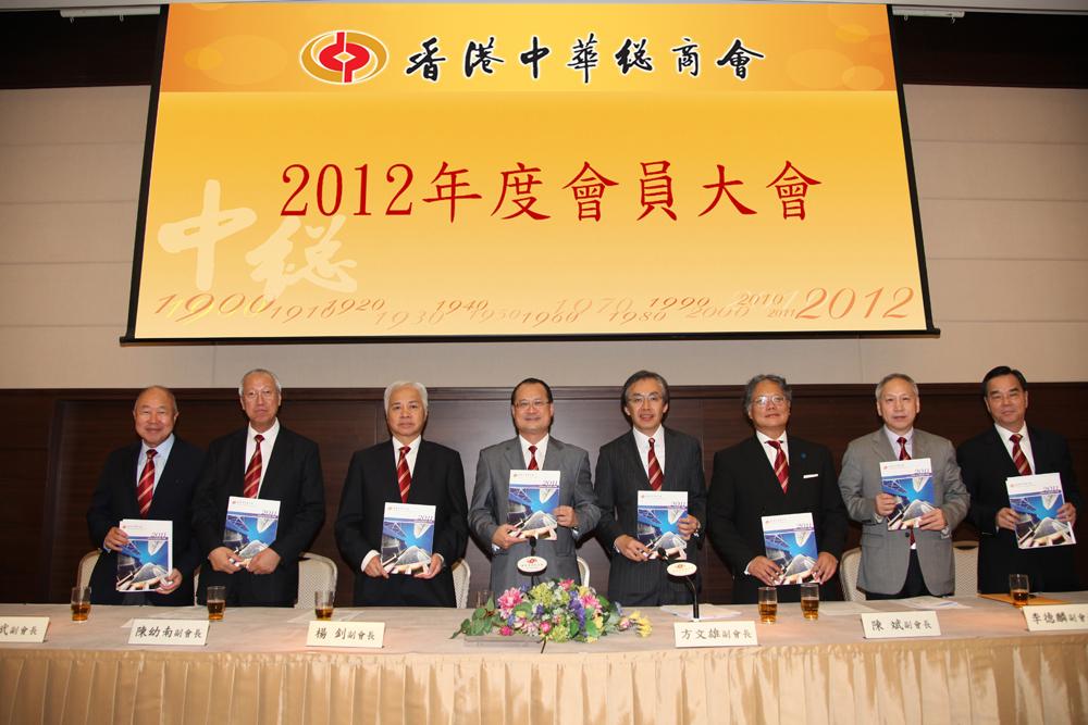 蔡冠深在會員大會致辭時表示,環球經濟在過去一年持續疲弱,歐債危機仍是揮之不去,內地經濟也略為放緩,香港亦難免受到影響。不過,本港零售消費市道在過去一年持續暢旺,訪港旅客續創新高,帶動不少相關行業保持不錯表現,失業率也一直處於較低水平。他預期,隨着全球經濟重心東移,內地及東亞地區的經濟發展將保持相對較佳增長,這亦為香港經濟長遠發展增添動力。加強香港與內地和東亞區域經貿融合發展,將是促進香港經濟持續穩定增長的重要元素。