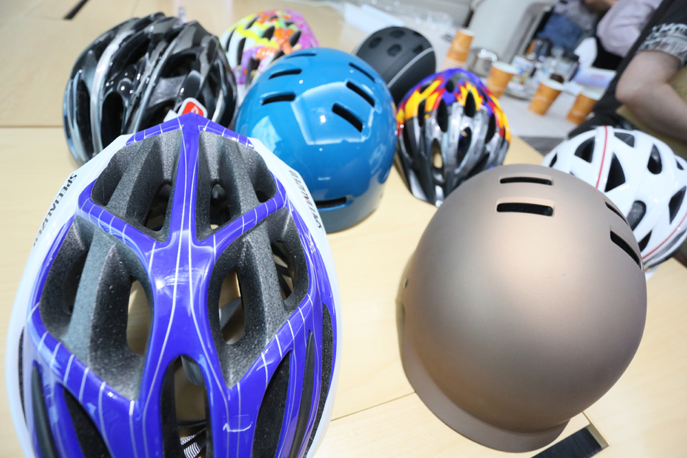 圖:消委會測試單車頭盔,結果顯示價錢貴的並不一定表現較好/本報記者麥潤田攝