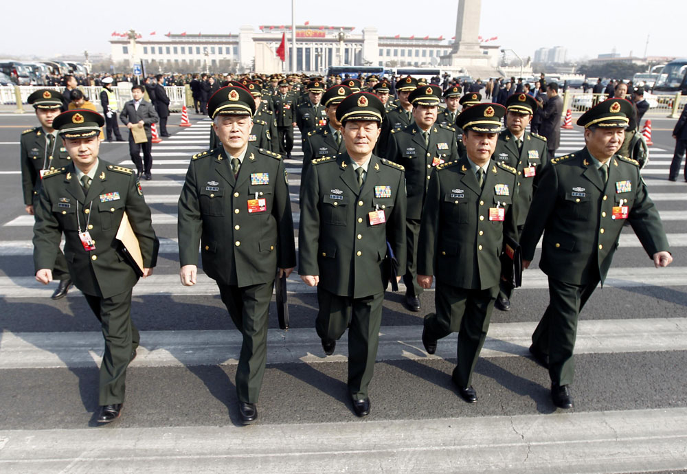 圖:在300名解放軍及武警部隊十八大代表中,總共有將軍217人。圖為今年三月出席全國「兩會」的解放軍代表/資料圖片