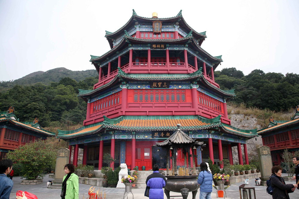 一九九○年觀音寺再經歷一次重建,在各方捐助下,一座二十四米高的三寶殿在舊殿後面落成。它仿效北京頤和園萬壽山的佛香閣,採用八角形四重簷設計,實際上只有三層。底層名「觀音殿」,安奉一尊十一面千手千眼觀音像,善財童子和龍女守護兩側,兩旁排列共十六尊羅漢像,雕工精妙絕倫,堪稱鎮寺之寶。