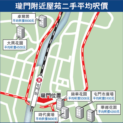 單是樓價已勁升11%,反映樓價走勢的中原城市領先指數CCL,去年3月報96.44點,期間更屢度破頂,最新報107.18點,17個月間樓價已升11%,可見瓏門售樓紙遲遲未批,實屬塞翁失馬,焉知非福,而同區的卓爾居、屯門市廣場及時代廣場等樓價,受惠瓏門開賣效應帶動輪流破頂,其中卓爾居最貴呎價已突破6000元,市場估計瓏門標準戶呎價有機會由原先7000元起步升至8000元。