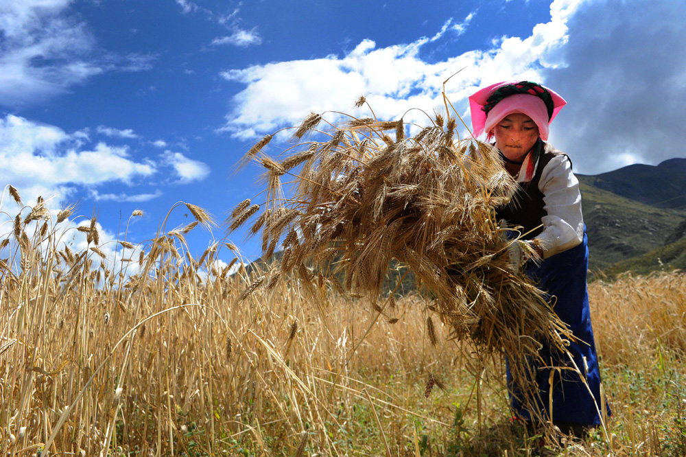 近期,西藏高原上的青稞陸續成熟,當地群眾抓緊時機收割,廣袤的高原大地上充滿豐收的喜悅。根據西藏農業部門提供的數據,西藏青稞產量已連續13年保持在60萬噸左右,預計2012年將達到62萬噸以上。圖為西藏墨竹工卡縣尼瑪江熱鄉羊日崗村村民9日在收割青稞。