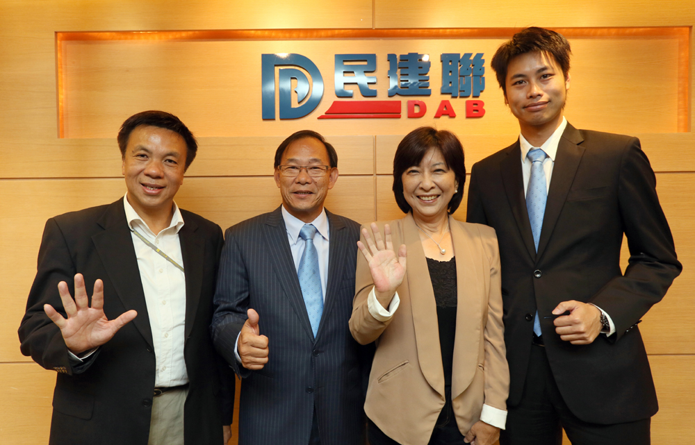 圖:(左起)鍾樹根、梁志祥、蔣麗芸、何俊賢四名民建聯立法會新丁昨日與傳媒見面/ 本報記者麥潤田攝