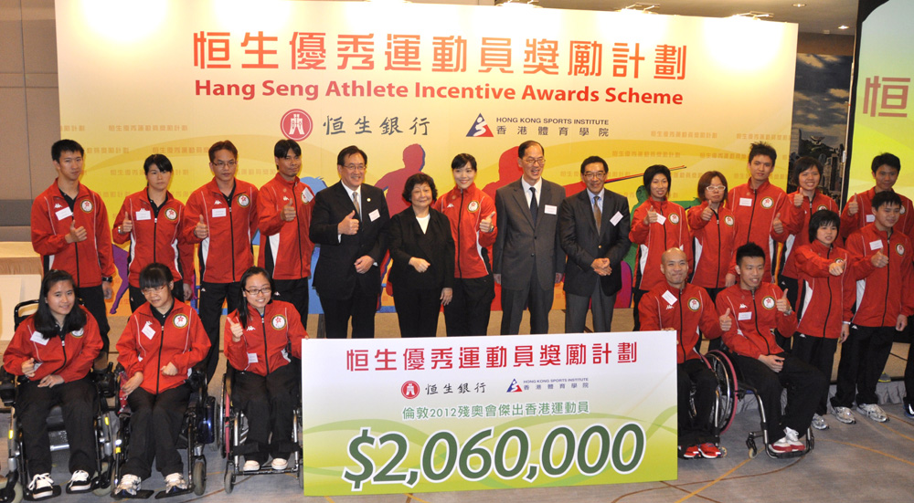 香港代表團在本屆殘奧會共派出28名運動員參與7個項目,最終取得3金3銀6銅的佳績,恒生銀行透過恒生優秀運動員獎勵計劃,頒發186萬港元現金獎勵與各位獎牌運動員,另額外撥款18萬港元,獎勵取得第4至第8的運動員,並向其餘運動員頒贈一面財神金牌(共價值2萬港元),以表揚他們比賽的決心及意志。
