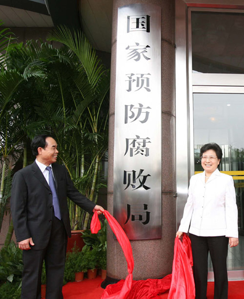 圖:國家預防腐敗局成立於2007年9月13日,現任局長由監察部部長馬馼(右)兼任