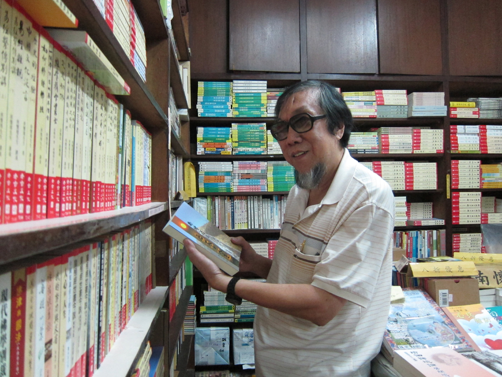拾級而上二樓,推開樸素的木門,在這一九六九年開設至今的青年書局,窄迫狹小的店內,桌上平鋪着,櫃裡橫疊着、豎排着,滿眼所見都是南懷瑾的書籍。店主陳明濱熱情地向記者介紹每一本南懷瑾著作的內容,如數家珍。