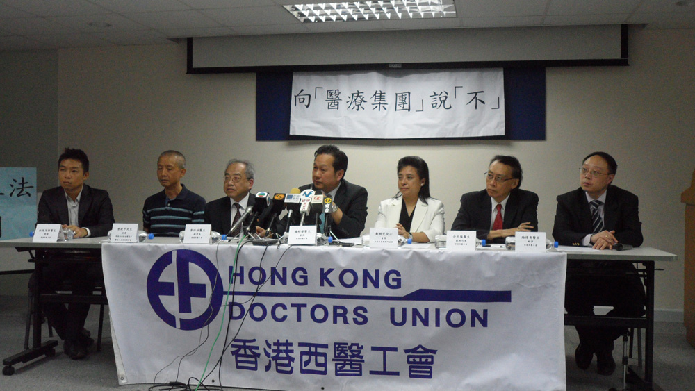 圖:西醫工會會長楊超發(左四)冀政府加強對醫療集團的監管。藥劑師協會會長鄭綺雯(右三)則認為同樣要對藥物製作監管/本報記者夏盧明攝