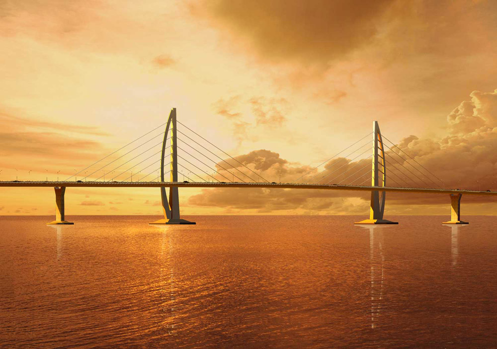 圖:港珠澳大橋橋樑工程三大主橋之一九洲航道橋率先海中打樁,圖為九洲航道橋「風帆」造型設計圖