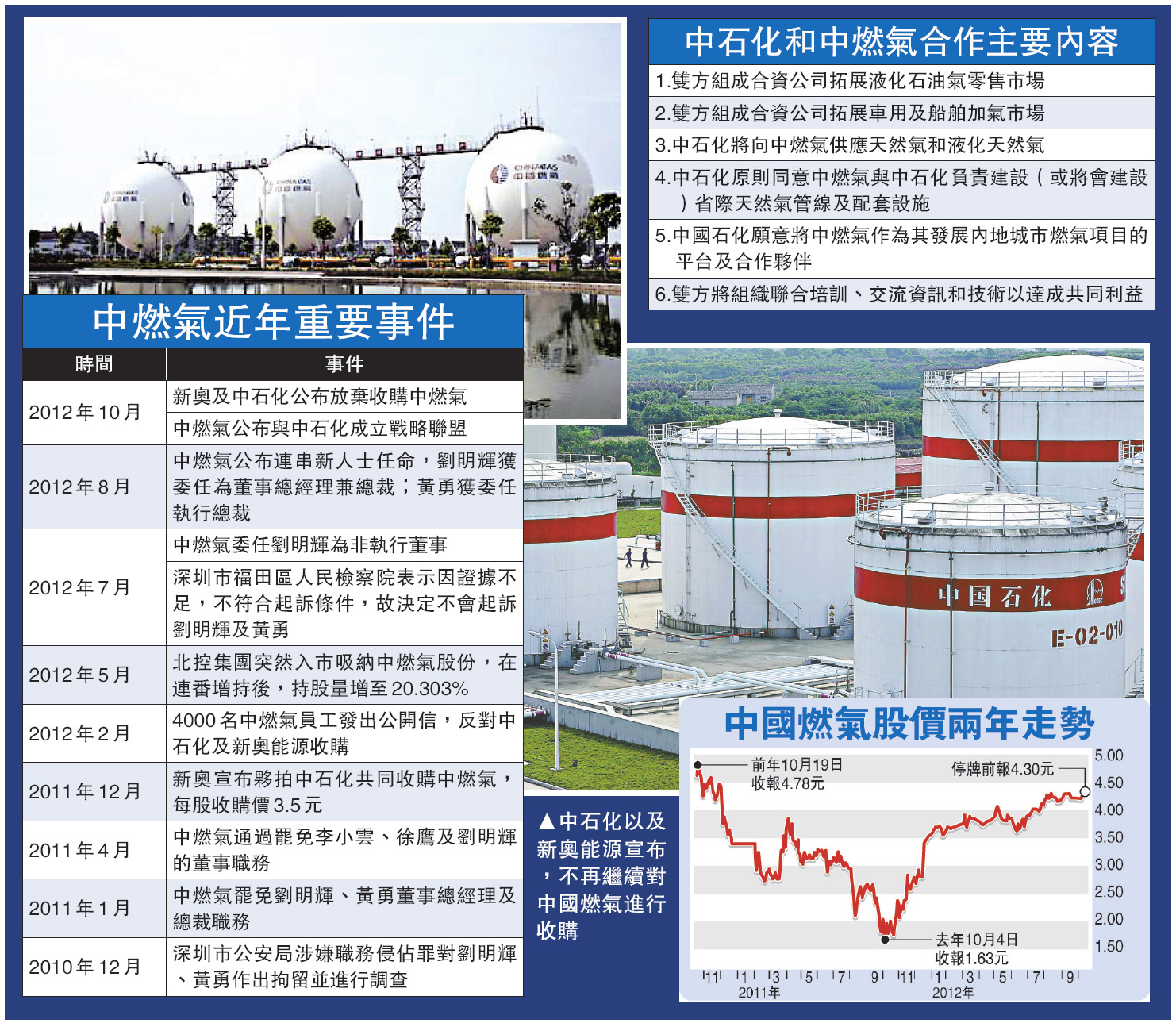圖:中石化以及新奧能源宣布,不再繼續對中國燃氣進行收購