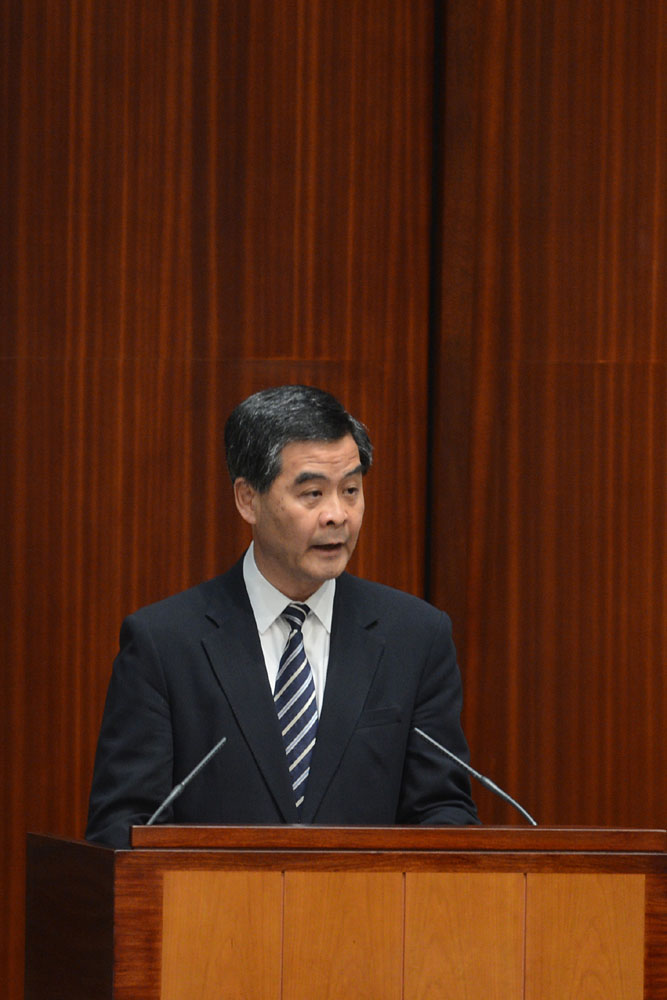 圖:梁振英指出,「大市場,小政府」理念已不能滿足香港「今日的需要」