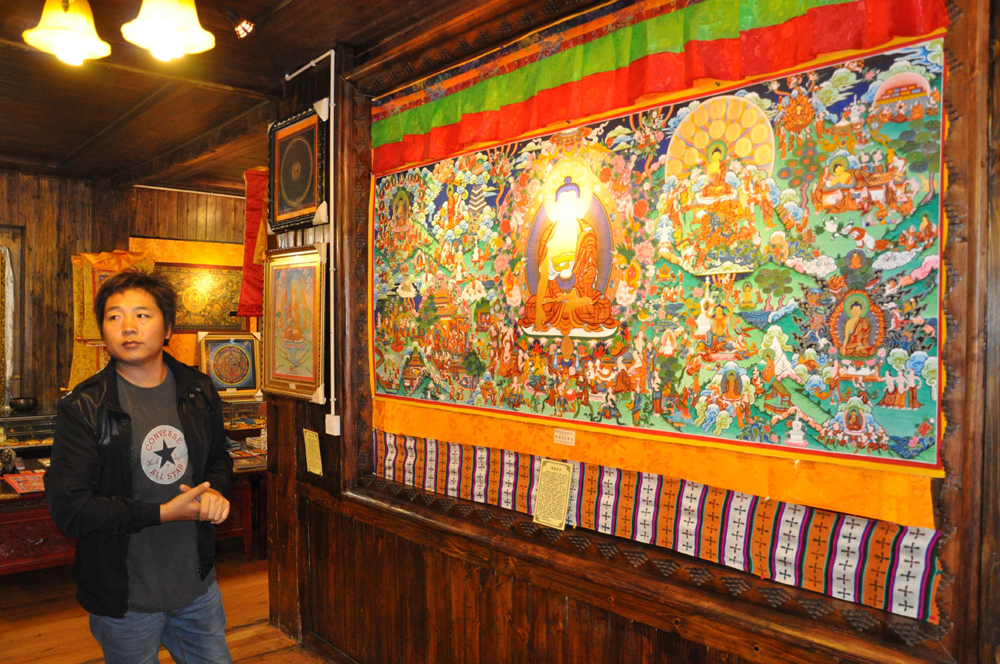 在迪慶州首府香格里拉獨克宗古城,來自青海的格桑達娃開辦了一家唐卡畫院,專門繪製和出售中高檔唐卡。