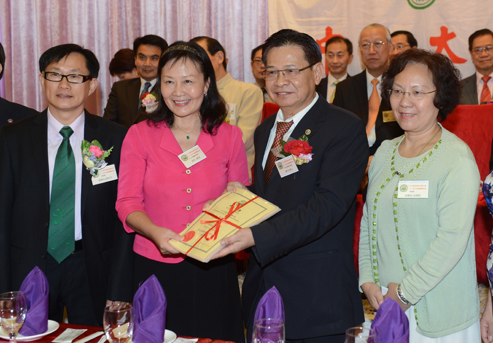圖:中山大學黨委副書記李萍(前排左二)為謝尚全(右二)頒發證書/本報記者 林良堅攝