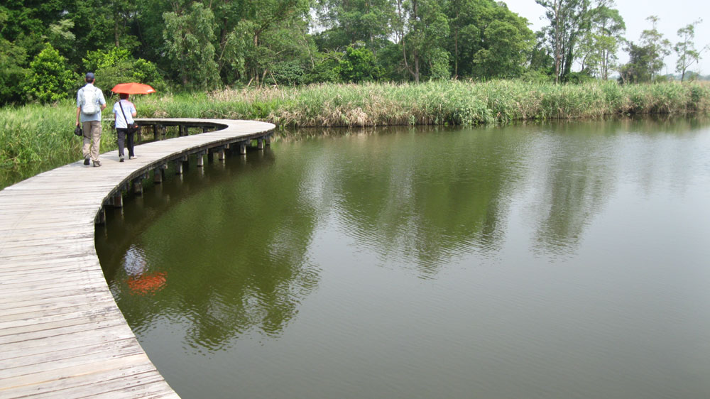 人在彎曲木橋上踱步,下面是沼澤,旁邊是蘆葦─這是香港濕地公園的一角。蘆葦能保護濕地環境和野生動物,走近細看,不難見到多種鳥類棲息其中。蘆笛、葦席、掃帚、紙張、中藥……蘆葦可資利用之處甚多;蘆群更好比弱小群體,聯袂擋風,比大樹更堅強。 樂 樂