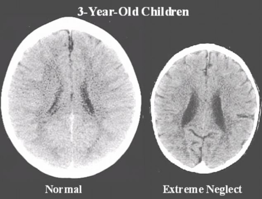 神經病學家表示,造成大腦大小差異的主要原因是母親對待他們的方式。受到母親照顧、獲得母親隨時回應需求的兒童有較大和充分發展大腦,而遭受嚴重忽視和虐待的兒童大腦較小。