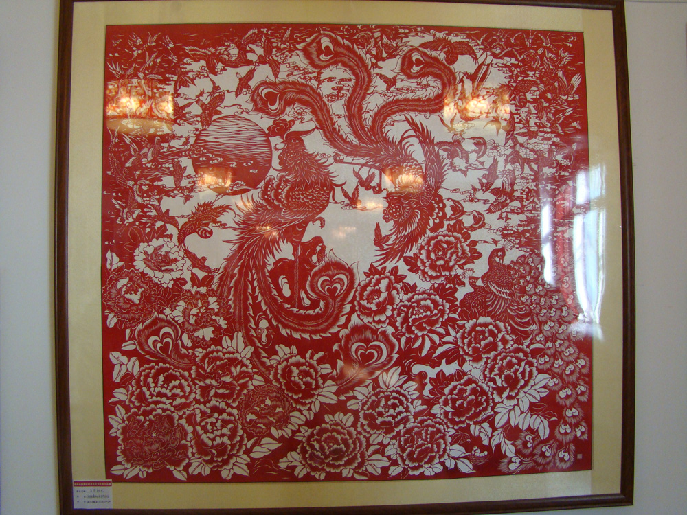 圖:中國(本溪)剪紙文化創意產業園今日展出的《百鳥朝鳳》
