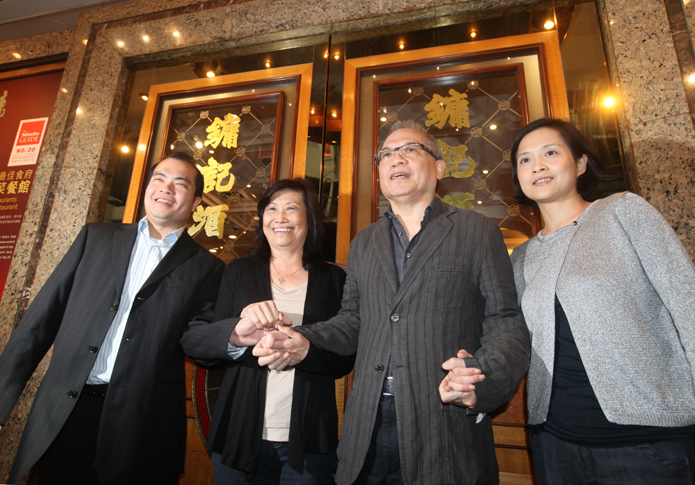 圖:甘琨禮(右二)獲知法庭判決後,與太太及子女在鏞記會見傳媒/本報記者蔡文豪攝