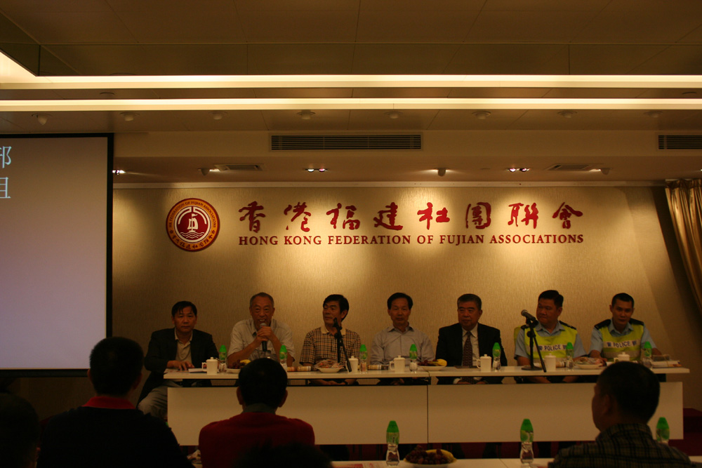 出席座談會的主要人員有福建省泉州市公安局副局長邱軍練,香港泉州市同鄉總會候任會長傅森林,會長助理鄭亞鵬、副會長王萬材,鄉賢張雙慶教授及港島交通部道路安全組兩位警長。