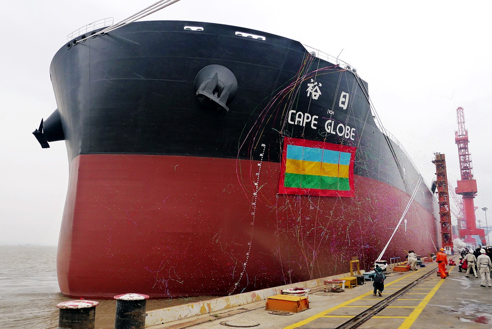 圖:上海外高橋造船為台灣裕民航運建造的20.6萬噸紐卡斯爾型散貨船在滬交付首船/楊楠攝