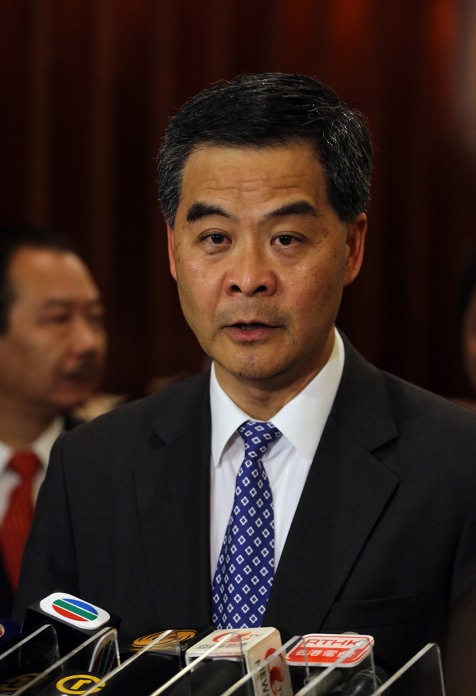 圖:梁振英指,林奮強不可能在公布印花稅前得知措施內容