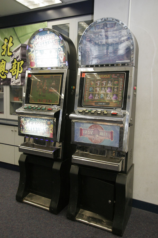 圖:警方在遊戲機中心內搜獲的角子老虎機