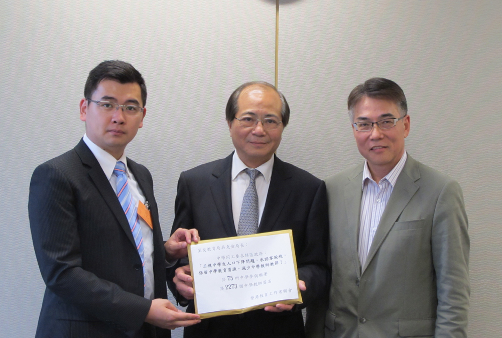 另外,教聯會主席黃均瑜歡迎局方宣布三年內不裁員兼保留超額教席三年,他呼籲踏前一步,承諾不殺校不縮班,學界無後顧之憂。他指出,教師薪酬佔教育經費八成半,局方只須解決其餘一成半經費的缺口,就可達至不殺校不縮班,減派將不成問題。