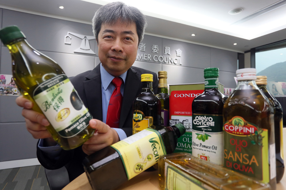 消委會搜集市面11款包裝以英文標示為「Olive Pomace Oil」(橄欖果渣油)或「Pomace Olive Oil」的產品,當中五款同時以中文標示為「橄欖油」、「純橄欖油」、「精純橄欖油」或「精煉橄欖油」,但標籤沒有寫「橄欖果渣油」。餘下六款沒有中文名稱,但零售點貨架上以中文標示為「橄欖油」、「醇香煮食橄欖油」、「精煉橄欖油」、「精製橄欖油」和「純橄欖油」,卻完全沒提及「橄欖果渣油」。