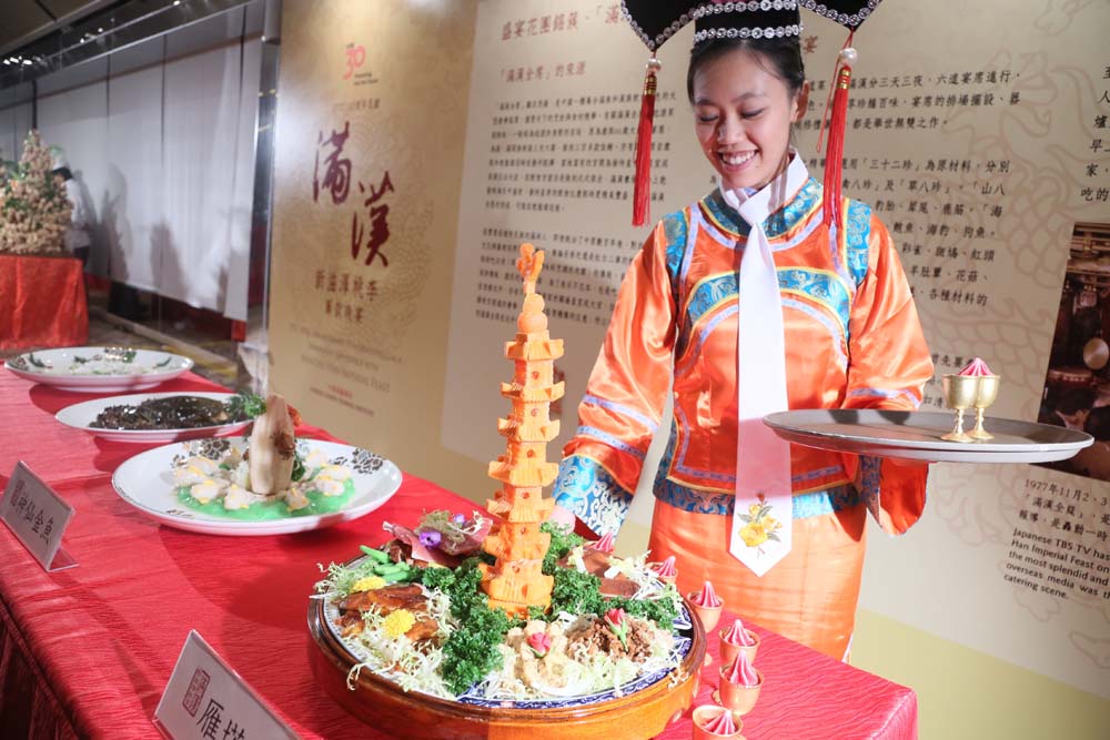 滿漢全席再現香江!為慶祝職業訓練局成立30周年,職訓局轄下中華廚藝學院參考古籍記載的菜式炮製滿漢全席,期望透過晚宴傳承中華飲食文化,及為發展基金進行籌款。今次職訓局將滿漢全席當中的15中道菜展現,並按照傳統將「雁塔題名」為頭炮菜,亦有利用現今烹飪技術,使用分子料理炮製的「翡翠夜明珠」作甜品,全場十圍宴席,全場爆滿。