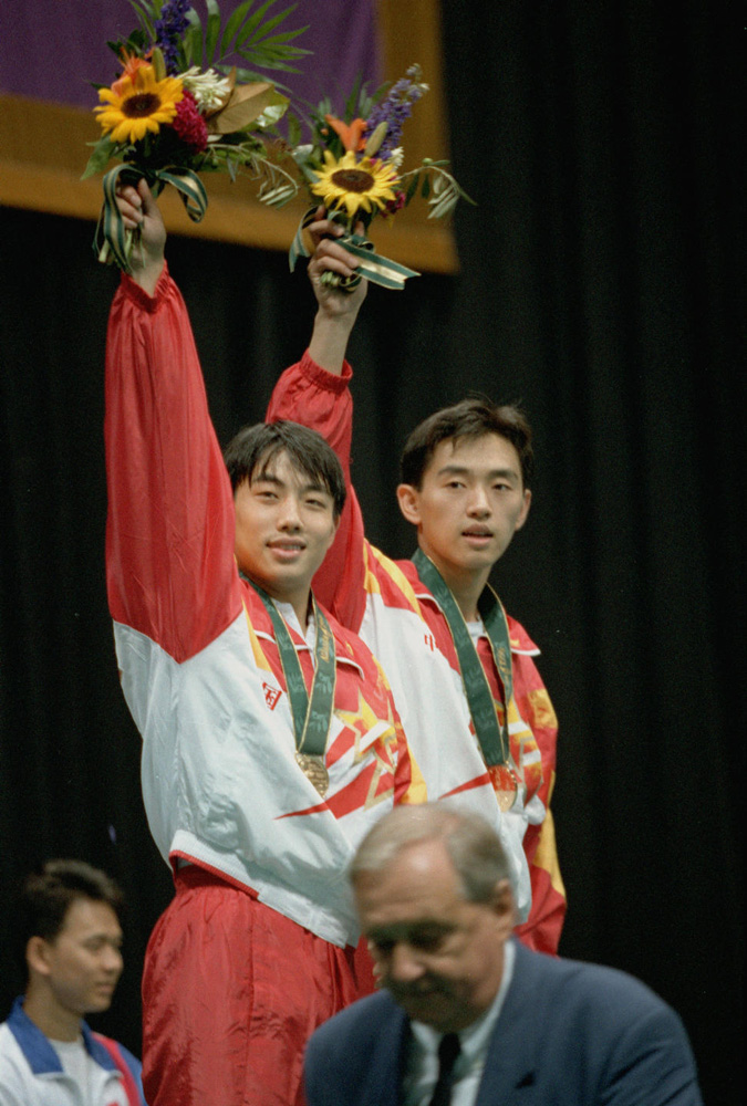圖:劉國梁(左)與孔令輝昔日合作摘下亞特蘭大奧運男雙冠軍