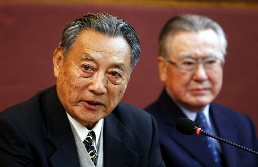 圖:「九二共識」的親歷者原國台辦副主任唐樹備(左)與台灣前海基會副董事長兼秘書長邱進益(右)參加紀念「九二共識」20周年學術研討會