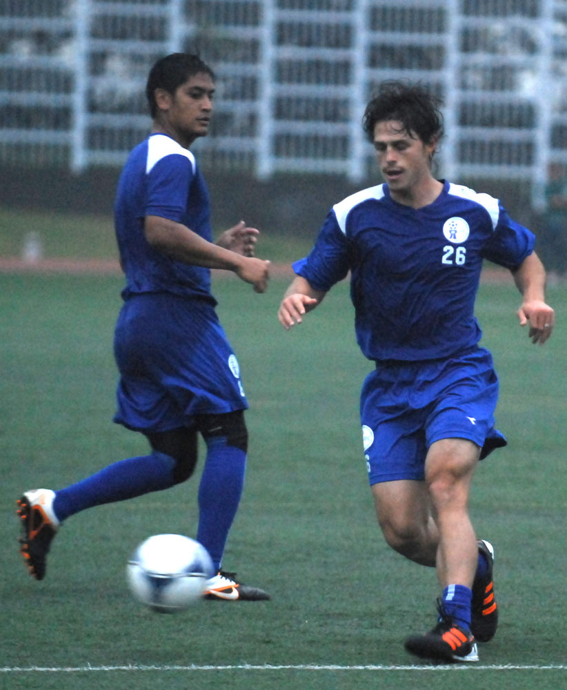 圖:迪拉加沙未有來港,效力美職聯新英倫革命的賴恩古爾(右)成為關島名氣最大的球員\本報攝