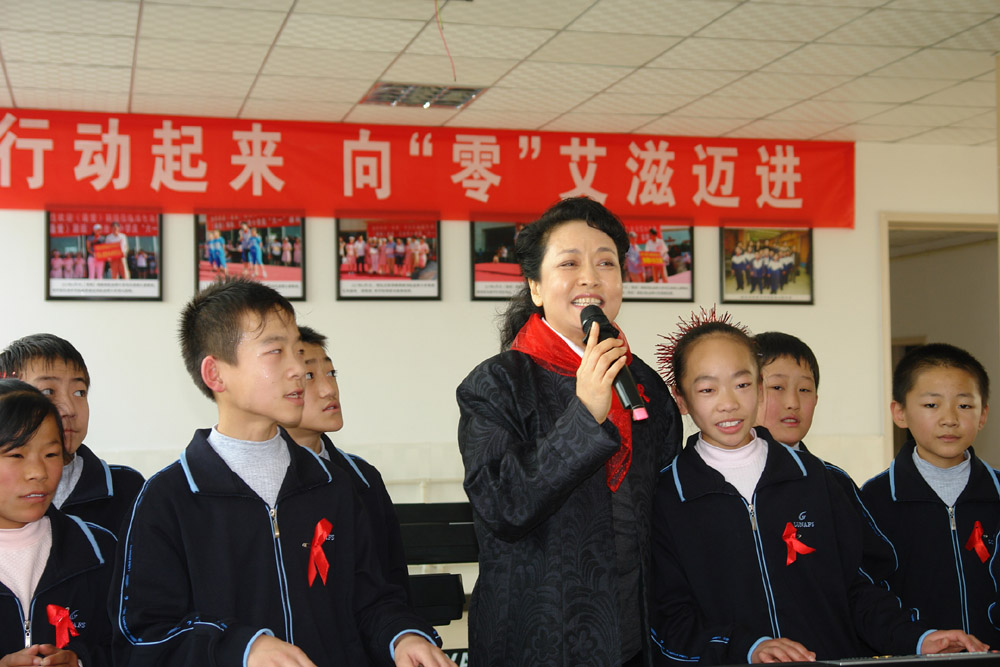 習近平夫人彭麗媛雖然近幾年越來越少地出現在舞台和銀幕上,但她作為聯合國愛滋病親善大使,卻把更多的時間和精力放在了公益事業上。在山西臨汾紅絲帶學校,就有一群愛滋病患兒與彭麗媛結下特殊的「紅絲帶」之緣。