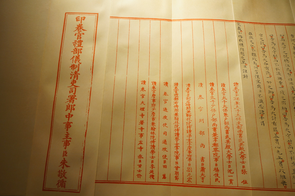 明嘉靖二十三年(1584年),閱卷大臣薦吳情為第一名。嘉靖皇帝認為,「吳」同「無」音,「無情豈居第一」,將其改為第三名。正當此時,一陣大風將宮殿旗幡颳起,形成一個「雷」字形,嘉靖皇帝則認為,是天意告之,要定一個姓雷的人為狀元。恰好第三名浙江臨海人叫「雷鳴秦」,便定為狀元。因此,後人諷刺說,「無情舉子無情帝,雷鳴秦來撿便宜」。後人稱為「天意狀元」的劉若宰,出身貧苦,相貌醜陋,且駝背。崇禎皇帝本不想點他為狀元,但又看到文章太漂亮了,正當猶豫之時手中的筆滴下一滴朱砂,正好落在劉若宰名字上,則點為狀元。